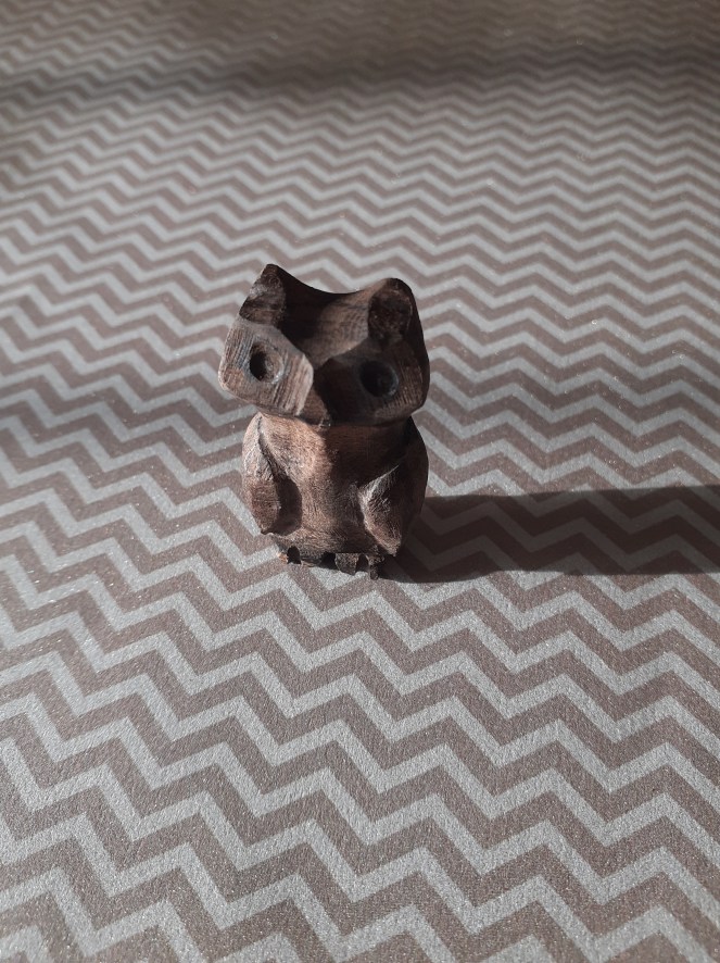 Nouvel Atelier proposé, création d’ un petit hibou en bois (3 cm). Il ressemblera à ce modèle avec un bois plus tendre pour débutant.